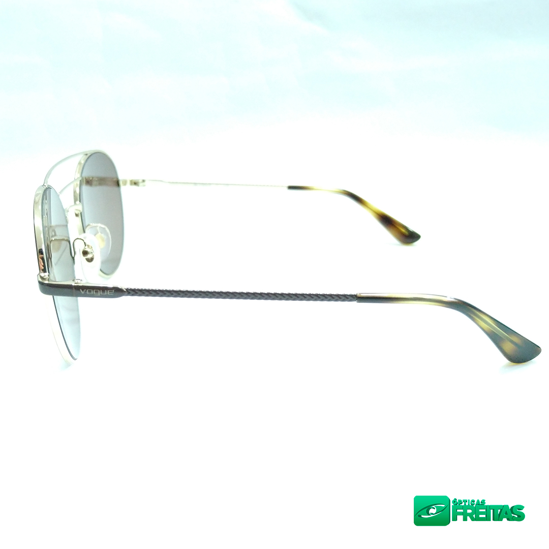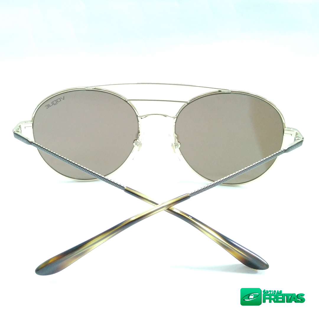 Cor da Armação: Marrom Brilho e Dourado Cor da Lente: Marrom Material da Armação: Metal Material da Lente: Policarbonato Tamanho das Lentes: Horizontal: 54mm Vertical: 51mm Tamanho Armação: De haste a haste: 136mm Comprimento da haste: 135mm Ponte: 18mm Itens Inclusos Oculos Sol Vogue Estojo Flanela Certificado Nota fiscal